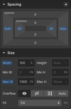With this class you can set your website global Margins (left and right). By default Sprkl uses 20px margins on LG breakpoint (Desktop).